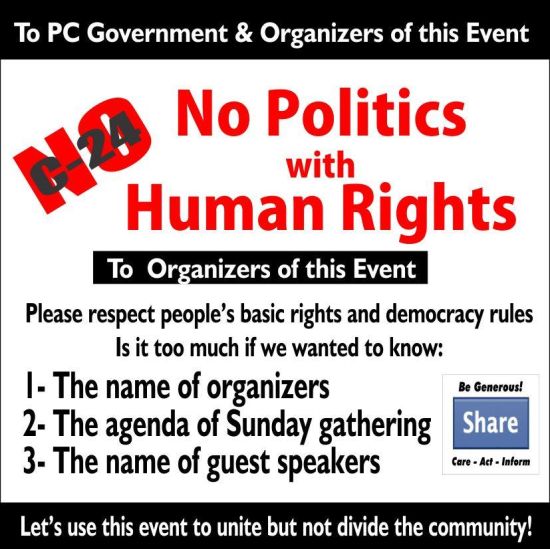 2- I wish the organizers didn't entitle solely themselves to the privilege of making all decisions such as selecting the speakers.(Ali Ehsassi) 3- I wish the organizers didn't consider this event as an opportunity to promote their friends (Ali Ehsassi) and their party (NDP). 4- I wish Ali Ehsassi would give priority to the success of this protest which depends on our community being united. 5- I wish Ali would consider our advice and suggestions and would cooperate with us to convince organizers to behave more wisely. 6- I wish organizers could act in a transparent way, involving more people in decision making. 7- I wish our community were more involved, organized, aware and informed and had created a committee to lead this campaign from the beginning. 8- I hope we learned from our mistakes in TD Bank account closures and are not going to make the same mistakes again. 9- I Hope the Sunday gathering is going to take us to the next step and not be just a forum for propaganda, repeating the same information and slogans again and again. 10- I hope during this Sunday gathering we talk about how to create the committee to lead this campaign. Recognizing that this event is a golden opportunity to unite our community, and without unity this protest couldn't succeed, we should act in a more responsible way. I hope by sharing my concerns I didn't discourage anyone. On the contrary, I hope to motivate everyone to express what they have in heart and mind and help this protest become ours. Although I am not happy the way organizers worked up to now, I am thankful to them for whatever they did was their best. Together we will be stronger. United we will force changes. ________________________ |