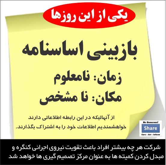 از تاریخ 16 سپتامبر 2015 که کمیته بازنگری اساسنامه پایه گذاری شد و تنی چند از جمله اینجانب از آن حذف شدیم، تا امروز 7 اکتبر هیچ جلسه ای در رابطه با کمیته سیاست گذاری و یا اساسنامه تشکیل نشده، و یا اینکه بدون اطلاع رسانی تشکیل شده و ما از آن بی خبریم. بهروز عزیز دیگر حتی تشکیل نشدن جلسات کمیته سیاست گذاری را که معمولن هفته ای یکبار در روز های چهارشنبه صورت میگرفت را به اطلاع اعضای گروه نمیرساند. از آن جهت که تصمیمات اتخاذی در کمیته ها میبایست به تائید هییت مدیره برسند، و آخرین صورتجلسه ای که در سایت کنگره اعلام شده به تاریخ اول سپتامبر میباشد، مشخص نیست که آیا تشکیل کمیته بازنگری اساسنامه مورد تائید قرار گرفته است یاخیر. در ضمن در رابطه با نحوه تشکیل کمیته بازنگری اساسنامه اعتراضی به هییت مدیره در تاریخ 22 سپتامبر ارسال شد که تا به امروز در آن رابطه پاسخی دریافت نشده است.