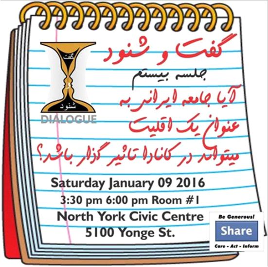"گفت و شنود" موضوع بجائی را برای جلسه بیستم خود انتخاب کرده است. در آخرین جلسه یکی از شرکت کنندگان از عدم حضور جمعی کامیونیتی ایرانی در فعالیت ها و مبارزات اجتماعی جامعه مادر سخن میگفت. بیژن احمدی، فعال ترین عضو هییت مدیره کنگره نیز این هفته در سلام تورنتو در رابطه با رایزنی های سیاسی به رهبری کنگره نوشته است. تجربه هائی همچو اعتراض و مبارزه با بسته شدن حساب های بانکی بعضی از ایرانیان که با شکست مواجه شد، اعتراض به تعرض لفظی به خلیج فارس توسط جان برد وزیر امور خارجه دولت هارپر و اعتراض به اهانت چونگسون لیونگ نماینده فدرال سابق از ویلودیل که هردو با پیروزی مواجه میشوند، نشان دهنده این میباشند که به سادگی نمیتوان به سئوال مطرحه به عنوان تم گفتگوی جلسه آینده جواب داد.