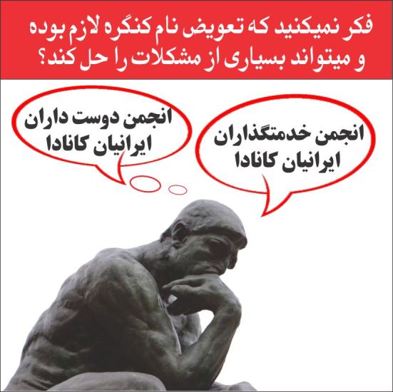 چهار سال میباشد که بازنگری اساسنامه به درازا کشیده شده است. شاید در آن حکمتی نهفته باشد. باید بپذیریم که اگر نام این نهاد اینچنین دهان پر کن نبود، خیلی ها در فکر تسلط پیدا کردن بر آن نبودند. و این نهاد میتوانست به هدف اصلی اش که متحد و خدمت کردن به کامیونیتی میباشد، برسد. چرا از فرصت بازبینی اساسنامه بهره نگیریم و به فکر تعویض اسم این نهاد نباشیم. بعد از هشت سال نتوانستیم خود را در حد شئونات این اسم برسانیم، پس بیائیم اسمی را انتخاب کنیم که در سطح ما باشد.