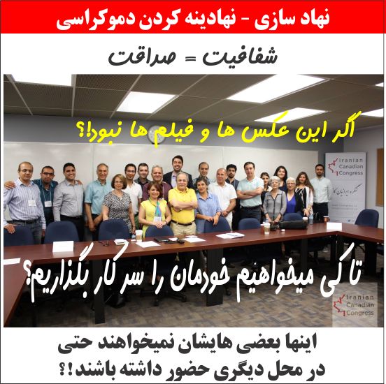 زمانی که به قصد نمیخواهیم واقعیت ها را دیده و به ضعف های خود اعتراف کنیم در همین وضعیت باقی خواهیم ماند. میدانیم که بعضی از فعالان اجتماعی ما که از سرپرستان همین سازمان های غیر انتفاعی میباشند حتی حاضر نیستند کنار هم بنشینند، از یکدیگر نام ببرند، به گفتگو بپردازند و یا زیر سقف یکدیگر جمع شوند. ولی برای تبلیغات تصویری ابائی ندارند که به هم لبخند زده و یا در کنار هم بایستند. متاسفانه کنگره ایرانیان که میبایست هدفش شکستن این نحوه تفکر ها باشد، از ترس اینکه مبادا از هوادارانش کم شود خود به این عارضه دامن میزند. کنگره ایرانیان حاضر نیست که جلساتش را در پریا برقرار کند، مبادا که مورد انتقاد قرار گیرد. ولی حاضر است که در جهت برقرار روابط سیاسی با ایران، بازگشائی سفارت، و رفع تحریم ها فعالیت کند، و اهمیتی هم نمیدهد که بخش قابل توجهی از کامیونیتی نه میخواهد، نه صلاح میبیند، و نه این گونه فعالیت ها را در محدوده وظایف این نهاد دانسته و یا اینکه اصلن با آن مخالف هم هستند. خوشبختانه در جلسه گفت و شنید 24 این موقعیت پیش آمد که برگزارکنندگان آن که همیشه خود را از حامیان همبستگی و همصدائی اعلام کرده اند نحوه تفکر تفرقه آمیز و جناحی خود را بر ملا سازند.