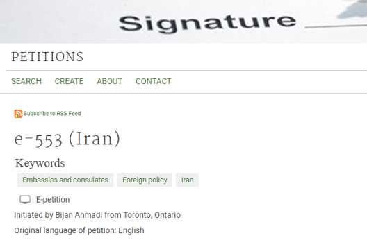 پتیشن پارلمانی بازگشایی سفارت - توسط بیژن احمدی - اسپانسر مجید جوهری