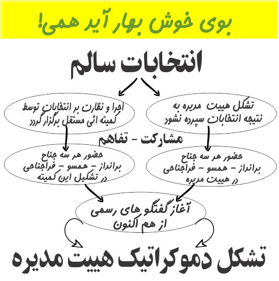 بر آن، موارد جدیدی به نگرانی ها افزوده شده است: سازندگی بدون مشارکت و تفاهم غیر ممکن میباشد. انتخابات سالم و مورد اعتماد و تائید اذهان عمومی هم زمانی صورت میگیرد که از انحصار هییت مدیره خارج گردد. فراگیری کنگره نیز فقط با حضور همه جناح های فکری امکان پذیر است. تفاهم و مشارکت این سه جناح نشان از رشد و آمادگی کامیونیتی برای آغاز مرحله جدیدی از وجودیت خود در کانادا میباشد. غیر از این میبایست به جدال ها آنقدر ادامه دهیم که این آمادگی بوجود آید. |