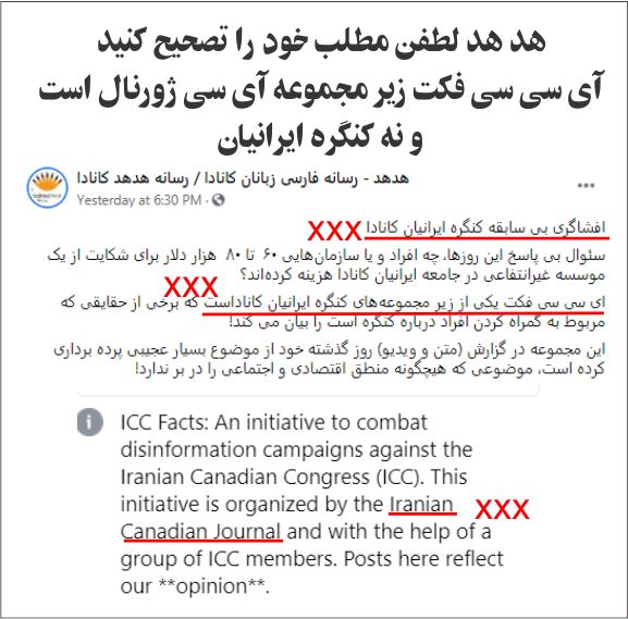 کانادا" که در آن صفحه فیسبوکی "آی سی سی فکت" را زیر مجموعه