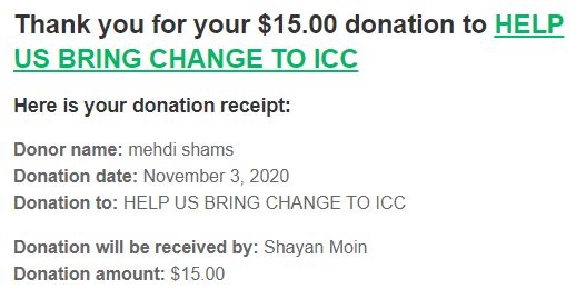 15 دلار میدهیم و برای تماشای فیلمی به سینما میرویم. صد دلار و بیشتر میپردازیم که به ارکستر مجلسی گوش دهیم. خیلی بیشتر از آن صرف میکنیم که فینال یک مسابقه ورزشی را تماشا کنیم. من حاضرم تمام زندگی ام را بدهم برای اینکه یک نفر، آری فقط یک نفر، آنچه را که من با مشاهده جلسه دادگاه حس کردم، حس کند. آنچه را که من به دست آوردم، به دست آورد. بودا میگوید رسیدن به قله کافی نیست. باید بازگشت و بدست آورده را به حداقل یک نفر منتقل کرد. با رسیدن به چنین جایگاهی تازه میتوان به عظمت اعماق هستی پی برد که به هر سویش بروی بی پایان است. میخواستم 150 دلار به چهار متقاضی کمک مالی کنم که این موقعیت را برای من فراهم ساختند. با خودم گفتم به جای یکبار شاید بهتر باشد که آنرا در ده قسط بپردازم که اولن مهدی صمدیان، بیژن احمدی، امیر حسین شریف، آی سی جی و آی سی فکت را ده بار گوشزد کرده باشم که چه کسانی این چهار عزیز را کمک مالی میکنند و دومن اینکه دیگران را نیز مادام یادآور باشم که اگر نه وقت و حوصله اش را داریم، حداقل از طریق کمک های مالی، هر چقدر هم ناچیز، به این عزیزان این پیام را داده باشیم که ارزش از خودگذشتگی های آنها را میدانیم. در ضمن گفته باشم که اگر امکان حضور من در جلساتی که هییت مدیره و حامیانش برپا میکنند بوجود آید چه بسا که آنها هم بتوانند از کمک های مالی من بهره ور شوند. که من ادب را بیشتر از بی ادبان و معرفت را بی معرفت ها آموخته ام.