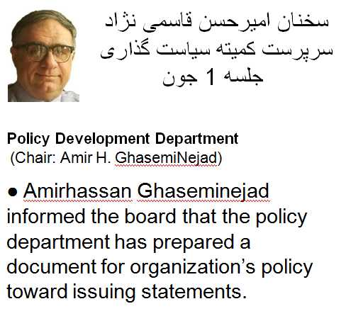خوش به حال بعضی ها که سئوالاتشان در کمتر از 24 ساعت، آنهم توسط مقام ریاست جواب داده میشود. ولی سئوالات و اعتراضات یک کاندیدای انتخاباتی بی جواب میمانند. آیا این تبعیض نیست؟ . امیر حسن قاسمی نژاد در جلسه اول جون اعلام میکند که که کمیته سیاست گذاری دستورالعملی را برای صدور بیانیه ها توسط هییت مدیره تهیه کرده است. در جلسه ششم جولای بخش اول آن، بدون آنکه در صورتجلسه اثری از آن باشد، و یا گفتگویی در باره آن توسط اعضای هییت مدیره صورت بگیرد به رای گذارده شده و مورد تایید همگان قرار میگیرد. چهار ماه بعد هنوز این دستورالعمل آماده نشده و اعضاء کوچکترین اطلاعی در باره موضوع، محتوا و گفتگو ها ندارند. زمانی که هم در این رابطه سئوال میشود، ریاست کنگره با اینکه توضیح میدهد که این طرح ربطی به بازبینی اساسنامه ندارد، در نتیجه نیاز به مطرح شدن در مجمع عمومی و رای گیری ندارد، باز آنرا به مجمع عمومی مرتبط میسازد. چرا حتی بخش اول که مورد تایید هییت مدیره قرار گرفته منتشر نشد تا اعضاء هم بتوانند همقدم با هییت مدیره در باره آن فکر و گفتگو کنند؟ چند ماه تاخیر در انتشار خبرنامه، چند ماه تاخیر در انتشار صورتجلساتی که هر بار بی محتوا تر میگردند، سکوت و سکون در تمام فعالیت ها، در میان نگذاشتن هیچیک از فعالیت هایی که در حال صورت گرفتن میباشند بصورت مستقیم و علنی با اعضاء، سخن از مشارکت داوطلبان کردن بدون اینکه از آنها نام برده شود، آیا نشان از بیماری این نهاد نیست؟ تا آنجاییکه من میدانم و سعی کرده ام بیشتر بدانم، تایاز فخری، شجاع الدین ضیاییان، مازیار شیبانیفر، و مهران فرازمند تنها داوطلبان معرفی شده این نهاد هستند که هر چهار نفر در بازبینی اساسنامه مشارکت دارند که این خود بیشتر از آنی که لازم است میگوید. . برفرض هم که هر چه هییت مدیره در مجمع عمومی مطرح کند، رای هم بیاورد، آیا اعتباری هم خواهد داشت؟ آیا سراسری کردن کنگره که بدون آنکه اعضاء از آن مطلع گردند و یا اینکه با آنها مشورت شود، کافی نبود تا دریابیم که این نحوه عمل نتایج مثبتی نخواهد داشت؟