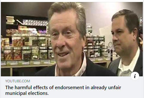 حمایت های نامنصفانه سلبریتی ها از کاندیدا های انتخاباتی با تشکر از سوپر خوراک که این امکان را بوجود آورد تا در رابطه با تاثیرات منفی که حمایت شخصیت های اجتماعی از کاندیدا ها میتواند در انتخابات بوجود آورد از جان توری (شهردار تورنتو) و علی احساسی ( نماینده ویلودیل در اتاوا) سئوالاتی مطرح گردد. یکی از آن تاثیرات مخرب افزایش نابرابری در انتخابات است. با وصف اینکه در دوره آینده شهردار تورنتو از قدرت بیشتر و حق وتو برخوردار است، از هم اکنون با حمایت های خود سعی میکند که نمایندگانی به شهرداری راه یابند که در خط فکری او حرکت میکنند. جان توری بدون توجه به آنکه این نحوه عمل میتواند به دموکراسی لطمه وارد سازد بر صحت رفتار خود اصرار میورزد. انتخابات شورای شهر میبایست غیر حزبی باشند ولی متاسفانه شاهد هستیم که شخصیت های سیاسی بدون ملاحظه این مورد تحت عنوان حقوق شهروندی به حمایت کاندیدا ها میپردازند. نتیجه اینگونه به توجهی ها کناره گیری رای دهندگان میباشد که با مرور زمان بیشتر میگردد.