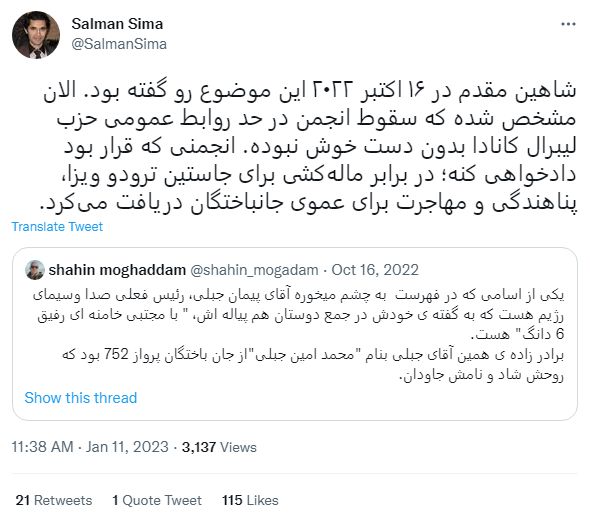 در این نوشتار از سه رویداد/نهاد میگویم: ۱- انجمن اعضای خانواده قربانیان پرواز که سه سال بیشتر از عمرش نمیگذرد، ولی آنچنان موفق عمل کرده که بتواند سالن هزار نفره ای را از اعضای خود پر کند. بالاترین مقامات سیاسی و حکومتی را زیر یک سقف جمع کند و در سیاست خارجی کانادا نسبت به ایران تاثیر گذار باشد. این برای کامیونیتی سرخورده ما امیدوار کننده و نسیمی از انقلاب است. ۲- لیلی چنگ عضو جدید در شورای شهر از ویلودیل است که موفق شد در رقابت با مارکوس برایان فهر که نظام حاکم سفید، از رسانه ها گرفته تا سیاستمداران، از جمله جان توری شهردار تورنتو، و علی احساسی از او حمایت میکردند، پیروز گردد. شنبه گذشته، در گردهمایی در کنار و بر روی یخ کاری کرد که تا به حال کسی نکرده بود. ۳- کنگره ایرانیان که پانزده سالی درجا میزند، این روز ها در موقعیت حساسی قرار گرفته است که میتواند با حرکتی انقلابی به انقلاب بپیوندد و یا اینکه با به تاخیر انداختن انتخابات این نهاد را در خدمت رسانی به کامیونیتی باز هم عقیم نگاه دارد.