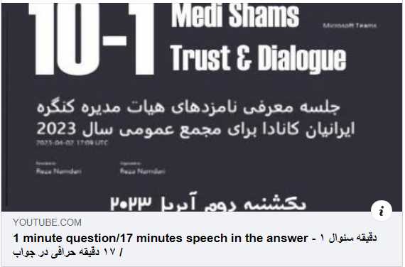 آیا سئوال از این روشن تر میتواند باشد؟ هییت مدیره در رفع دو مشکل اساسی، عدم اعتماد و عدم شرایط لازم برای ایجاد گفتگو برای از میان برداشتن شکاف بوجود آمده در کامیونیتی، که به آن واقف بوده و آنرا از اهداف خود قرار داده بود، ناموفق بوده است. راه حل (۱)هییت مدیره به جای اینکه شکست خود را بپذیرد و با در میان گذاشتن، مشکلات، آموخته ها و تجربیات به دست آمده به هییت مدیره دوره بعدی، سه نفر از آنها، آرزو خدیر، نایب رئیس سابق، امیرحسن قاسمی نٰژاد، ریاست کمیته سیاستگذاری، و محمد وحیدی راد که در درجه اول منافع شخصی و اهداف خود را در نظر دارد، تصمیم گرفته اند که در همان مسیر سابق به فعالیت های خود ادامه دهند. راه حل (۲)هییت مدیره جدید: ۱- رفع این دو مشکل اساسی را از اولویت های خود اعلام نماید. ۲- برنامه خود را برای حل این دو مشکل اعلام کند. راه حل (۳)تشکیل کمیته «جان نو بخشی» و دعوت از داوطلبین برای تهیه طرحی برای رفع اینگونه مشکلات اساسی من از هم اکنون آمادگی خود را برای مشارکت در این کمیته اعلام میدارم. برنامه هایی در این زمینه دارم که به تدریج به اشتراک میگذارم.