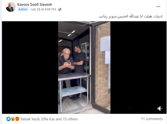 انجام داده بودی. من امروز، نه فقط از طرف شما و آن سیه چهره ای که عربده میکشید، بلکه به خاطر آن نوشته بر شیشه، از زمانی پدر، پسر و همسر و کارمندانش پوزش میطلبم. خشم و توهین و تهمت شما و دیگران را نیز به جان میخرم. شرم خود را بر زبان میاورم تا از طریق آزادی بیان به آزادگی رسم. تعدادی از تظاهر از حدود سی تظاهر کننده در عاشورای 2023