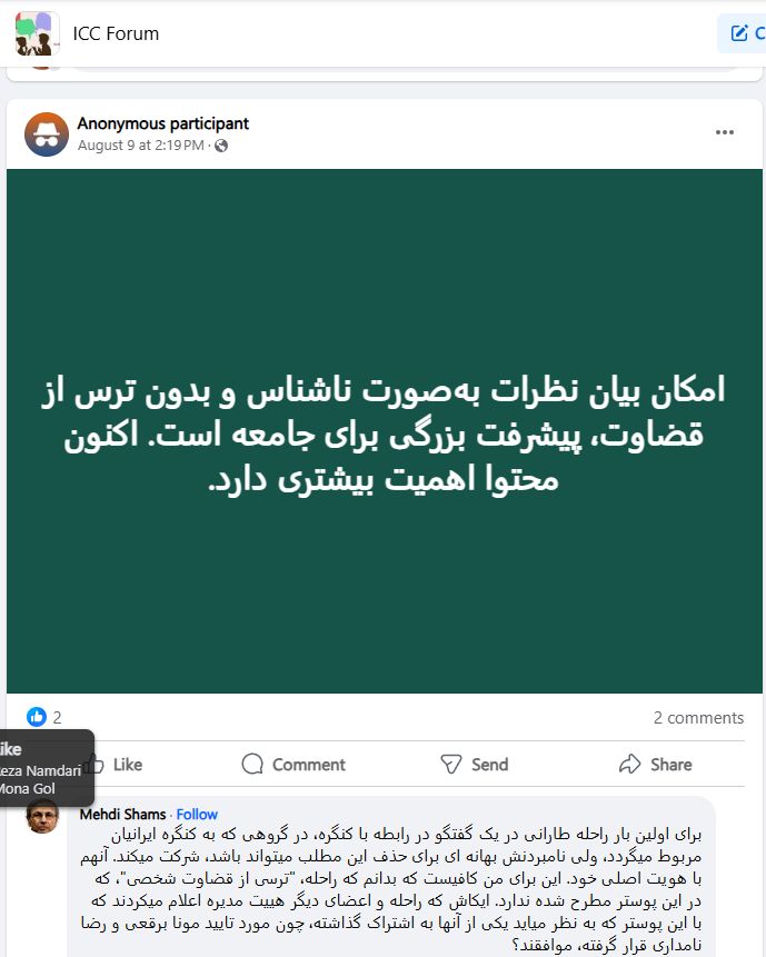 1- بیان نظرات بصورت ناشناس