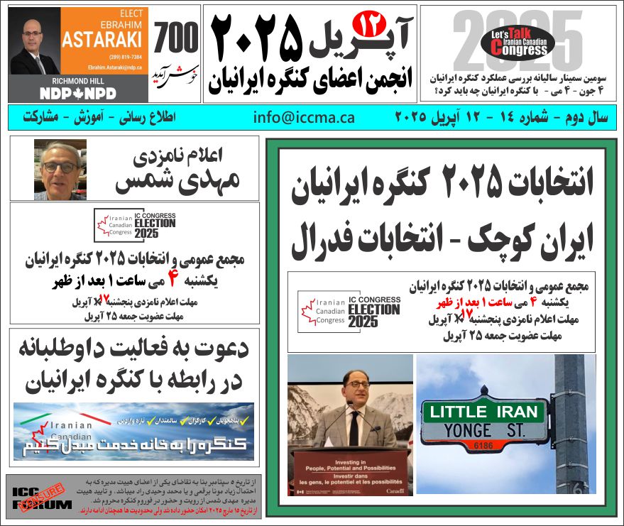 | 6 | Congress (ICC) | مسئولیت اجتماعی ما: چرا باید همین حالا به کنگره ایرانیان کانادا بپیوندیم؟ | ||