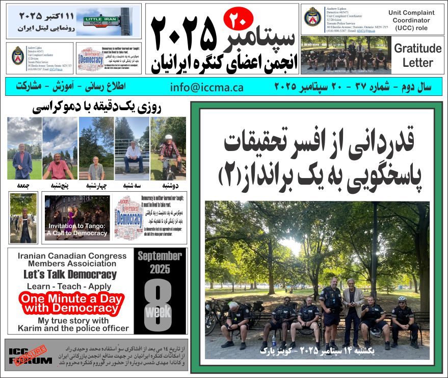 | 3 | Congress (ICC) | خبر پرواز ناگهانی فرشته کوچک، لیام عزیز عضوی از جامعه ایرانی کانادایی، در حادثه دلخراش مهدکودک در ریچموندهیل اونتاریو، دلهایمان را به درد آورده است. باور این داغ سنگین برای هیچ پدر و مادری آسان نیست. ما را در غم خود شریک بدانید. | ||