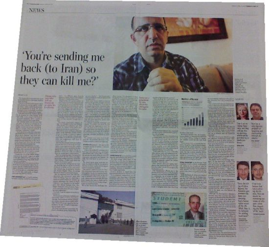 2 full page report on Kavoos Deportation in Toronto Star http://www.thestar.com/news/world/article/1162819--kavoos-soofi-shiaoosh-s-one-way-ticket-to-an-uncertain-fate-in-iran Immigration Canada should admit that deporting Kavoos to Iran could be a fatal error.