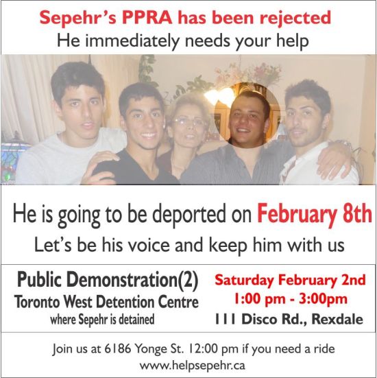 Sepehr has less than one week before being forced to leave Canada. Friends, family, friends of friends let's do our best to keep him with us.