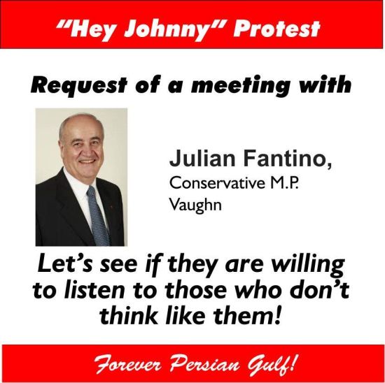 One step a day to make them aware. Take 3 minutes of your time. Copy, paste, sign and send the following letter to Julian Fantino, M.P. Vaughn. Please cc it info@hambastegi.ca. Let's see if they want to listen to those who don't think like them? Let's prove to those who prefer a non Iranian-Canadian MP that they are wrong. This is one of those times that we can experience the difference.
