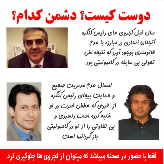 مادام تکرار میکنند که ترس از چیست. پرسشنامه ای خواهد بود، تازه هییت مدیره باید آنرا تائید کند، دست آخر هم مردم هستند که تصمیم میگیرند. و یا اینکه به تخصص های افرادی که در بازنگری اساسنامه دست دارند اشاره میکنند، و یا اینکه میگویند روش چه اهمیتی دارد زمانی که نتیجه کار، اساسنامه ای قابل قبول باشد. اگر چنین باشد و باید درست و غلط بودن حرکتی را از نتایج آن سنجید، باید اعتراف کنیم که هیچکس تا به امروز در کنگره مانند رضا بنائی به کامیونیتی خدمت نکرده است. ترویج قانونمندی، مبارزه با قدرت طلبی و خودسری بر خدماتی که کنگره میتواند برای کامیونیتی انجام دهد ارجحیت و اولویت دارد.