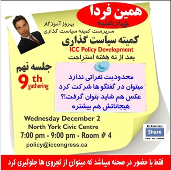 این هم نامه ای که به اعضای کمیته سیاست گذاری نوشتم خدمت اعضای محترم کمیته سیاست گذاری با تشکر از بهروز آموزگار که بعد از نه هفته غیبت امکان دیدار مجدد را فراهم کرده است. معقول مینماید که دستورات جلسه نیز به اطلاع اعضاء رسانده شود. به سهم خود موضوعاتی را که مایلم در این جلسه به آنها رسیدگی شود اعلام میدارم. 1- قبل از هر چه از کلیه اعضاء تقاضا دارم که صورتجلسه هشتم کمیته را که بیش از این چندین بار برای همگان ارسال داشته بررسی کرده تا بتوان آنرا در جلسه روز چهارشنبه تائید نمود. خواهشمندم کمی وقت صرف کرده، آنرا مطالعه نموده، اشکالات را عنوان کرده تا مورد تصحیح قرار بگیرند. تا لازم نباشد برای خواندن آن در جلسه وقت بگذاریم. 2- لازم میبینیم دلیل برقرار نشدن جلسات در نه هفته قبل توضیح داده شود و راه حلی پیدا کنیم که تکرار نشده و برقراری جلسات به یک فرد بستگی نداشته باشد. حتی اگر آن فرد سرپرست کمیته و عضوی از هییت مدیره باشد. 3- با تغییراتی که بوجود آمده لازم میباشد که اعضای کمیته سیاست گذاری ومحدوده عمل آنها مشخص گردد. 3- در ضمن در رابطه با در اختیار عموم گذاردن صورتجلسات زیر کمیته بازنگری اساسنامه بدون تائید کمیته سیاست گذاری که به نظر من غیر قانونی مینماید معترض بوده که تقاضای رسیدگی به آن را دارم. 4- همچنین قصد آن دارم که تشکیل زیر کمیته زیر را مطرح نمایم. زیر کمیته نظارت بر فعالیت های کنگره موضوع: بررسی فعالیت های هییت مدیره و کمیته های کنگره ایرانیان و ارائه گزارش ماهانه - بررسی، تجزیه و تحلیل گفتگو ها و تصمیمات اتخاذی در جلسات هییت مدیره، و نظارت بر اجرای آنها - تطابق و یا متغایر بودن فعالیت ها با اساسنامه، پروتوکل و یا اهداف تعیین شده برای کمیته ها و زیر کمیته ها - بررسی نحوه کاری بخش های مختلف و ارائه پیشنهادات در جهت بهبود فعالیت ها نحوه عمل: - ارائه گزارش ماهانه به کمیته سیاست گذاری، هییت مدیره و اعضاء از طریق به اشترک گذاشتن آنها در رسانه ها و سوشیال مدیا حضور هر چه بیشتر اعضاء در جلسه روز چهارشنبه گره گشای بسیاری از مشکلات خواهد بود، که بزرگترین آن در وضعیت فعلی نحوه عمل غیر دموکراتیک زیر کمیته بازنگری اساسنامه میباشد. با تشکر و امید دیدار روز چهارشنبه صورتجلسه شماره 8 پیوست میباشد. مهدی شمس