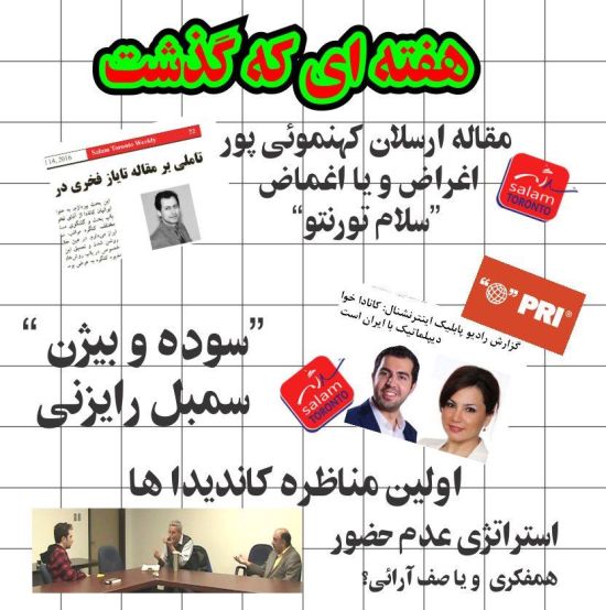 هفته پیش ارسلان کهنموئی پور، ریاست کنگره ایرانیان، مقاله ای در ادامه مقاله تایاز فخری به سلام تورنتو ارسال میدارد. غیر از من کسان دیگری بودند که به دنبال پیدا کردن آن مقاله در سایت آن نشریه چند دقیقه ای بی نتیجه وقت صرف کردند. حالا یا مثل ارسلان برای به اشتراک گذاشتن و یا مثل من برای اضافه کردن لینک آن در سایت همبستگی قسمت رسانه ها. اغراض و یا اغماض را دست اندرکاران نشریه بهتر میتوانند جواب دهند. این اواخر سوده و بیژن در اذهان عمومی به عنوان سمبل "رایزنی" در رسانه ها در آمده اند. جای تعجب است که چرا رسانه ها از اعضای هییت مدیره کنگره ایرانیان فقط این دو نفر را برای مصاحبه انتخاب میکنند. چه نیازی میباشد که آنها عقاید خود را به عنوان عقاید شخصی ارائه دهند ولی چندین بار نام کنگره ایرانیان در مقالات تکرار گردد. یکی از نو آوری ها و پیروزی های امسال مناظره کاندیدا ها به ابتکار عمل خود کاندیدا ها میباشد. جای تعجبی هم نیست که کمیته مشارکت جمعی با صدای بلند بیگانگی خود را به این حرکت اعلام دارد. عدم حضور همه کاندیدا ها به جز تایاز و مهدی قابل تعمق است. این استراتژی مشترک را چگونه میتوان تلقی نمود؟ همفکری و یا صف آرائی ؟! ادامه مطالب در مقاله این هفته.