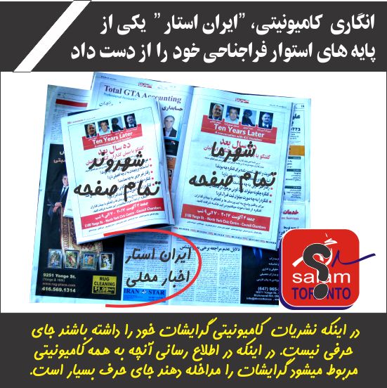 نوع آوری های تکنولوژی و مجازی شدن سیستم های خبری، ساختار غلط سیستم رسانه ای درکامیونیتی، بی توجهی آگی دهندگان، و عدم حمایت خوانندگان بیشک کلیه رسانه ها فارسی زبان را با مشکلات روبرو خواهند کرد. ایران استار چند ماهی منتشر نمیشد تا اینکه از سه هفته پیش نه فقط با شکل و شمایل جدید، بلکه با گرایشات متفاوت که بیشتر به جناح همسو نزدیکی دارد جای خود را مجددن در کنار نشریات دیگر پیدا کرد. آنچه از ابتدا مشخص است ناسازگاری دست اندرکاران جدید آن با شفافیت میباشد. من که سعی کردم در صفحات بلند و متعدد آن نامی از سردبیران و دست اندرکاران جدید بیایم ولی متاسفانه موفق نگشتم.