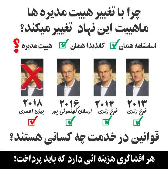 من به کامیونیتی و بخصوص به کنگره ایرانیان خیلی مدیون میباشم، چون خیلی چیز ها از آن آموختم. هر چقدر هم که برایشان وقت بگذارم باز هم کم است. - یکی آنکه انسان ها برای پول و ثروت و مقام تلاش نمیکنند و به جان هم نمی افتند، بلکه این خصلت ما میباشد که تعیین کننده نقش ما میباشد. به این کنگره نگاه کنیم، همه اش دردسر هست، نه پولی، که از جیب هم باید گذاشت، نه مقامی، که مادام باید خفت و خواری آنرا تحمل کرد، نه نامی، که جز بد نامی تا به حال برای کسی ارمغانی نداشته است. با وصف این هستند کسانی که برای در راس قرار گرفتن آن دست به هر کاری میزنند. - یکی دیگه آنکه، بسیاری از وقایعی را که شخصن در زمان انقلاب با آنها درگیر بودم و نمیفهمیدم را در همین کنگره متوجه شدم. آخریش هم حذف شدن توسط کسی میباشد که بدون من و ما ها نمیتوانست در جایگاهی امروزی خود برای فرمانروائی قرار گیرد. - یکی دیگر هم موثر قرار گرفتن است. در دو انتخابات اول آموختم که تا زمانیکه دموکراسی به معنی واقعی از طریق نهادینه شدن در ما وجود نداشته باشد، بهتر است که از همان ابزارهای ناقص و شرایط نامناسب برای فرهنگ سازی استفاده کرد. در انتخابات قبلی انصراف و انتخابات امروز حذف، و در مجموع حضور همیشگی، به نظرم تاثیر گذاری ام بیشتر از مشارکتم در هییت مدیره کارائی داشته است.