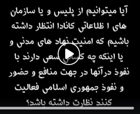 آیا میتوانیم انتظار داشته باشیم که پلیس و یا سازمان های اطلاعاتی کانادا امنیت نهاد های مدنی ما را حفظ کنند و یا بر اینکه چه کسانی سعی دارند که با نقوذ در آنها در جهت منافع، حضور و نفوذ جمهوری اسلامی فعالیت کنند، نظارت داشته باشند؟ شناخت بهتر یکدیگر ضمانتی بر امنیت ما در کانادا میباشد.