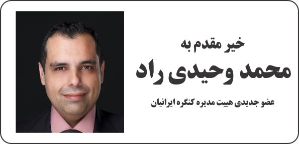 محمد وحیدی راد عزیز، بالاخره بعد از یکماه بدون آنکه هییت مدیره در باره آن اطلاع رسانی کند، متوجه میگردیم که شما به هییت مدیره پیوسته اید. از اینکه زود تر از این موفق نشدم به شما تبریک بگویم پوزش میطلبم. ایکاش حداقل آنهاییکه کنگره ایرانیان کانادا را " مشروعترین و بزرگترین نهاد دموکراتیک در نوع خود در کانادا" میشناسند، کناره گیری هر عضو هییت مدیره را اندوهی، و پیوستن هر عضو جدیدی را افتخاری برای این نهاد میپنداشتند. و در اطلاع رسانی هر دوی آنها به صورت جدی تری عمل میکردند.