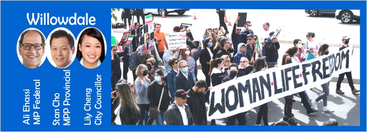 فارسی زبانان ویلودیل از اینکه ایرانیان و بطور کلی فارسی زبانان در انتخابات شهرداری حضور فعال نداشتند خیلی متعجب شدیم. با مشاهده تظاهرات عظیم در حمایت از انقلاب مردم ایران به وجد آمدیم. تصمیم گرفتیم که با بوجود آوردن این صفحه اولین قدم ها را در برطرف کردن این شکاف برداریم. از همه علاقمندان بخصوص اهالی ویلودیل دعوت میکنیم که با بیوستن به این گروه ما را یاری دهید. Farsi-Speaking Willowdale Intrigued by the lack of participation in the last election of Farsi-speaking people in Willowdale and amazed by the number of Iranians in recent protests in our neighbourhood, I have decided to act as a bridge to fill the g