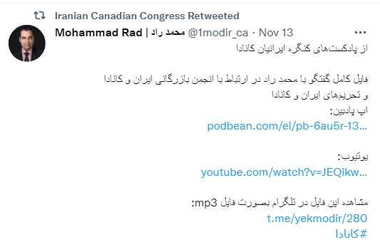 ایرانیان کانادا فایل کامل گفتگو با محمد راد در ارتباط با