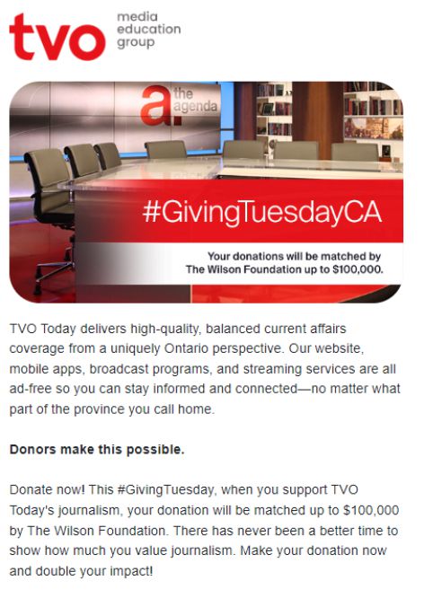 به رسانه های حامی دموکراسی کمک مالی کنیم اگر شما هم مثل من فکر میکنید که دموکراسی در حال کم رنگ شدن است پس به رسانه های حامی آن کمک مالی کنیم. هر مبلغی را که امروز سه شنبه ۲۹ نوامبر بپردازیم معادل آنرا بنیاد ویلسون خواهد پرداخت. پس سخاوتمندانه عمل کنیم. Let's support pro-democracy media. If you also think that democracy is in decline, then let's financially help the media that supports it. Whatever amount we pay today, Tuesday, November 29, will be matched by the Wilson Foundation. So let's act generously.