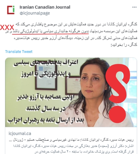 "کنگره ایرانیان کانادا در دور جدید فعالیتهایش بر این موضوع پافشاری میکند که فعالیتهای این موسسه مردمنهاد بدون هرگونه جانبداری سیاسی یا ایدئولوژیکی باشد و بر فعالیتهای مدنی تمرکز کند." . به نظر میاید که اطاق فکر دستور تغییر روش داده است. با وصف این نامه به رهبران احراب در مخالفت با یک از گرایشات سیاسی ارسال میگردد. آیا این یک حرکت صنفی است؟