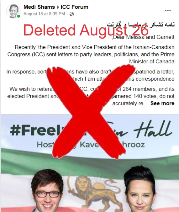 Dear Melisa and Garnett, I would like to express my heartfelt gratitude to both of you for standing in solidarity with Iranians who have endured four decades under one of the most oppressive regimes the world has ever witnessed. Recently, the President and Vice President of the Iranian-Canadian Congress (ICC) sent two letters to party leaders, politicians, and the Prime Minister of Canada. In response, certain Iranians have also drafted and dispatched a letter, which I am attaching to this correspondence. We wish to reiterate that the ICC, comprised of 284 members, and its elected President and Vice President, who garnered 140 votes, do not accurately represent the Iranian community in Canada. Furthermore, they do not effectively convey our voices and demands to Canadian politicians as required.