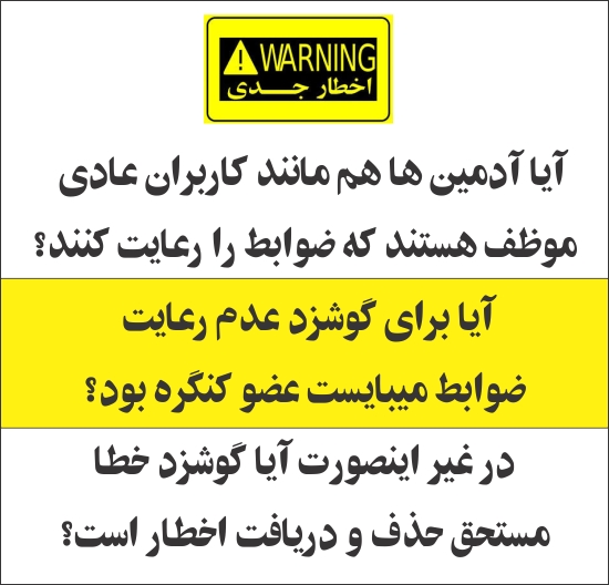 آیا آدمین ها از رعایت ضوابط مبرا میباشند؟ اگر اینگونه سئوالات را مطرح میکنم برای اینست که با نحوه پندار دیگران آشنا گردم. چون متوجه شده ام که هر کدام از ما در عالمی متفاوت از عالم دیگران زندگی میکنیم. تصور غلط که همگی در عالمی مشابه ای زندگی میکنیم نه تنها باعث بوجود آمدن اکثر سوء تفاهمات است بلکه باعث میگردد که این باور در ما بوجود آید که غرض ورزی در میان است. از کسی نام میبرم ولی انتظار دارم همانطور که آدمین ها تعداد مطالب و کامنت های من را زیر نظر دارند، به تعداد مطالب و کامنت های خود توجه کنند. مگر اینکه آدمین ها خود را مبرا به رعایت ضوابط بدانند. که این هم قابل گفتگوست. زمانی که مشارکت در فوروم کنگره در پایین ترین سطح قرار دارد، چنین بندی وبه اجرا در آوردن آن برای من نامفهوم است. اگر آدمین ها به دنبال ایجاد گفتگو در فوروم هستند، چرا از این موقعیت ها استفاده نمیکنند و با جوابگویی به اینگونه سئوالات، هم اذهان عمومی را روشن نمیسازند و هم به سالم سازی محیط برای گفتگوی سالم آماده نمیسازند. حذف مطلب فردی که بند 12 را رعایت نکرده نه تنها به سالم سازی محیط کمک نمیکند، بلکه حذف این مطلب که به این مورد اشاره میکند، مطمئنن وضعیت وخیم امروز را وخیم تر میسازد. بند 13 اظهار نظر در رابطه با نحوه اداره فوروم بعضی از آدمین های که نامی از آنها نمیبرم تا مبادا خاطری را بیازارم و یا اینکه بند دیگری از ضوابط را نقض کرده باشم، در این صفحه از من نام میبرند و به خطاهای من اشاره میکنند. آیا این تناقض با بند 13 نداشته و این حق را به من نمیدهد که در همین صفحه در رابطه با نحوه اداره فوروم نظر خود را بیان کنم؟ اینهم مثال دیگری میباشد از اینکه هر کدام در عالم متفاوتی زندگی میکنیم و خار را در چشم دیگری میبینیم ولی تیر را در چشمان خود نمیبینم.
