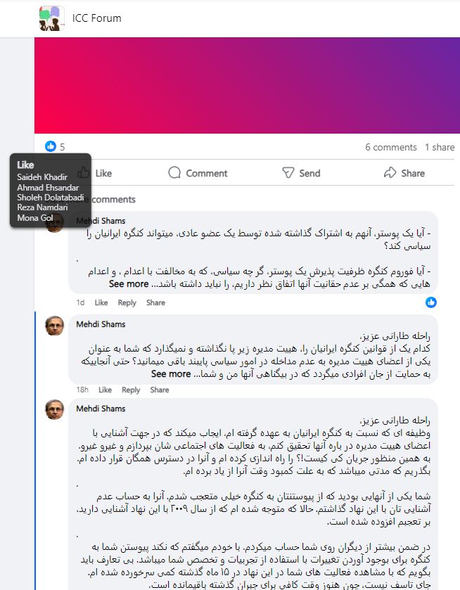 راحله طارانی عزیز، وظیفه ای که نسبت به کنگره ایرانیان به عهده گرفته ام، ایجاب میکند که در جهت آشنایی با اعضای هییت مدیره در باره آنها تحقیق کنم، به فعالیت های اجتماعی شان بپردازم و غیرو غیرو. به همین منظور جریان کی کیست!؟ را راه اندازی کرده ام و آنرا در دسترس همگان قرار داده ام. بگذریم که مدتی میباشد که به علت کمبود وقت آنرا از یاد برده ام.