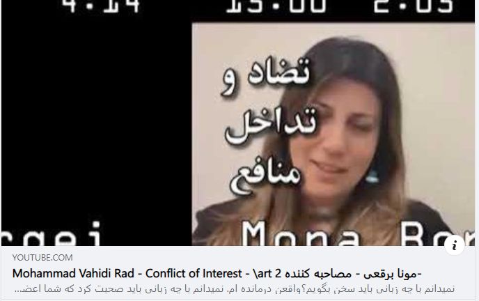 فوروم کنگره: شاید از خودتون بپرسید چرا من در این مدت، بهرغم اینکه میتونستم تنها با یک گزارش به یوتیوب اون ویدیو رو پاک کنم، این کار رو نکردم. حقیقت اینه که من نه تنها اون رو پاک نکردم، بلکه خودم اون ویدیو رو در همین صفحه به اشتراک گذاشتم. چرا؟ چون از طریق همین ویدیوها بود که افراد زیادی با من آشنا شدن و وارد تجارت و همکاری با من شدن. این روش تبلیغاتیایه که در این سالها برای من جواب داده و همچنان جواب میده.» از محمد وحیدی راد تقاضا داریم که به جای حذف ویدئو های ما، از آنها در جهت منافع خود استفاده کند که باعث خوشنودی ما خواهد شد. چه بهتر از این که هر دو طرف به اهداف خود رسیده باشند. کاسب زیرک و زرنگ/ خادم دلسوز و مدیر عزیزان، شعور ما را اندک و نادیده نگیرد. شما ارباب و ما رعیت، شما چوپان و ما گوسفند نیستیم. ما در هییت مدیره کنگره ایرانیان نیاز به کاسب های زیرک و زرنگ نداریم. ما نیاز به خادمین دلسوز داریم. برخورد سئوال برانگیز مونا برقعی - مصاحبه گر در این ویدئو مونا برقعی، سرپرست کمیته آموزش و تحقیقات حتی یک سئوال مطرح نمیکند. در صورتیکه هر موردی را که محمد وحیدی راد مطرح میکند، ده ها سئوال را در ذهن شنونده بیدار میکند. ولی به عکس مونا قاسمی به گونه ای عمل میکند که در انجمن بازرگانی ایران و کانادا منافعی داشته و یا اینکه یکی از شرکاء میباشد. چطور میشود یک فرد غیر جانبدار از مزایای