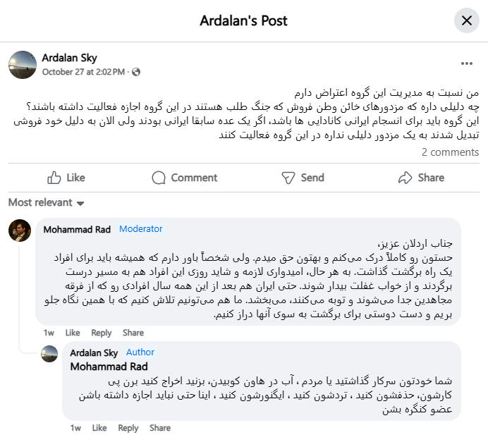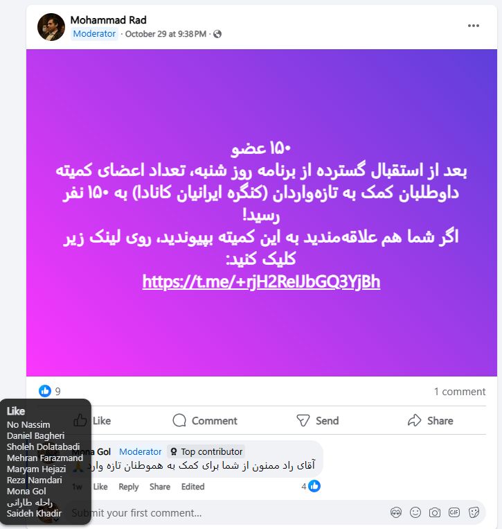 این گروه باید برای انسجام ایرانی کانادایی ها باشد، اگر
