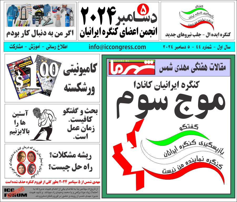 گفتگوی منا برقعی با شیدا شاملو هنردرمانی و سلامت روان مهاجرین تاریخ: ۸ دسامبر ۲۰۲۴ ساعت ۱۱:۳۰ صبح به وقت شرق کانادا؛ ۸:۳۰ صبح ونکوور و ۸ شب به وقت تهران