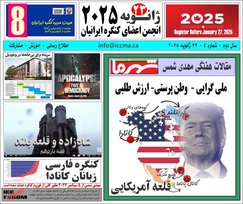 | Saeed Soltanpour | خیانت دانیل اسمیت نخست وزیرمحافظخ کار البرتا به تیم کانادا در برابر ترامپ /با سلام نخست وزیران استانهای کانادا و نخست وزیر ترودو در اتاوا برای سیاست مقابله با تعرفه های ترامپ برگزار شد دانیل اسمیت نخست وزیر محافظه کار | |||