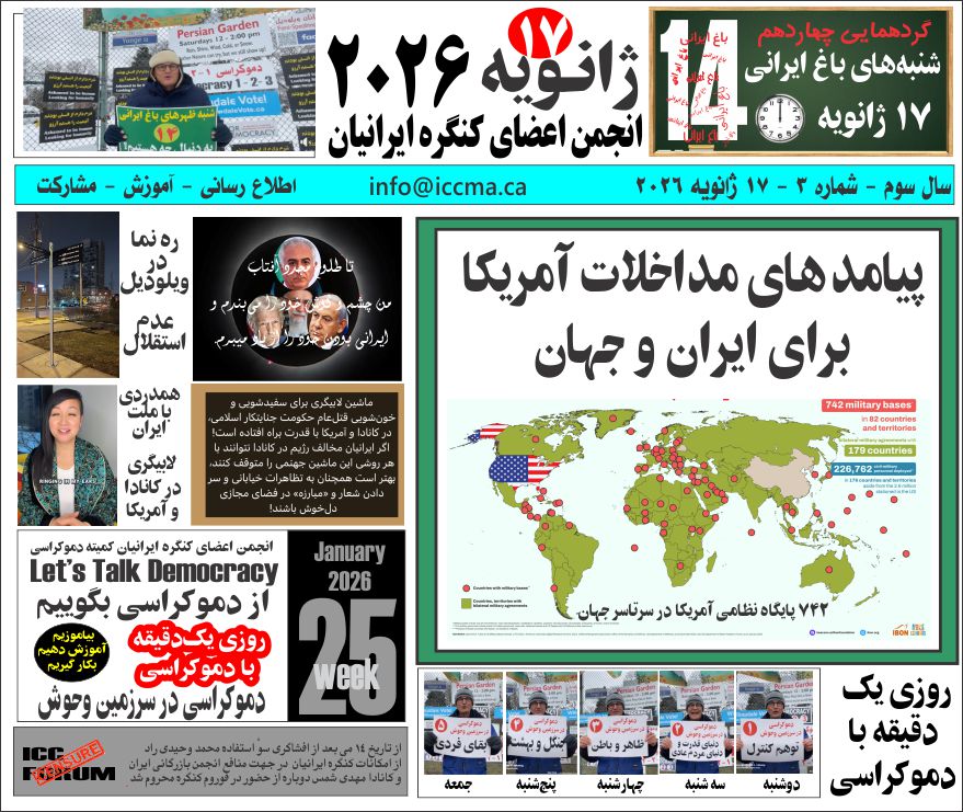 | January 16 at 1:19 PM | هموطنان گرامی، کنگره ایرانیان کانادا که همانند سازمان نیاک در آمریکا هستش برای لابی گری برای جمهوری اسلامی با تمامی قدرت وارد میدان شده است و سعی در این دارد که مطالبه |